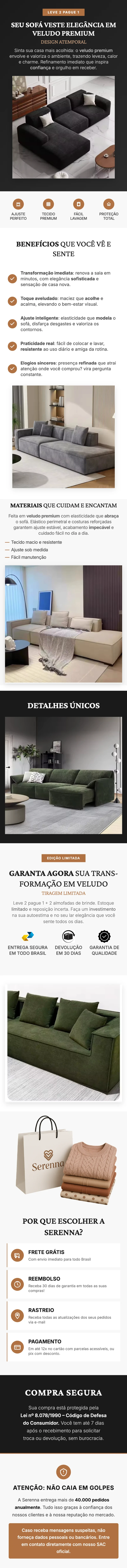 [Leve 2 Pague 1] Capa de Sofá Valentina em Veludo Premium (Conforto e Elegância para sua Sala) +BRINDES: 2 Almofadas